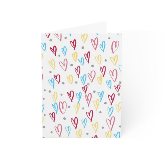 Scattered colorful hearts blank inside greeting cards (1, 10, 30, and 50pcs)